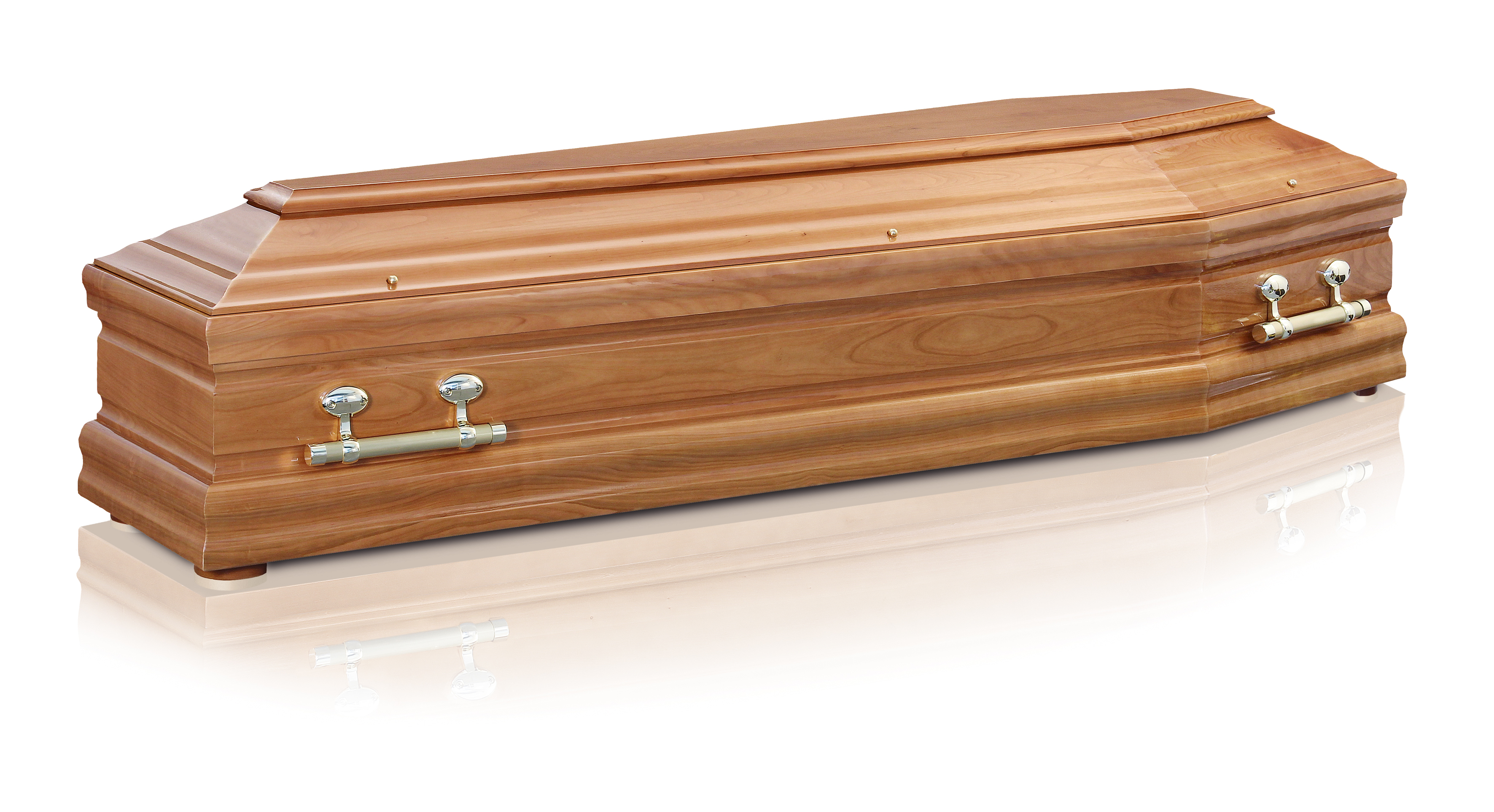 Exklusiv-Sarg aus Massivholz Birke furniert, Eichen-Hohlkehlen Farbe natur, lackiert Eckfüsse Metallgriffe Nr. 19...