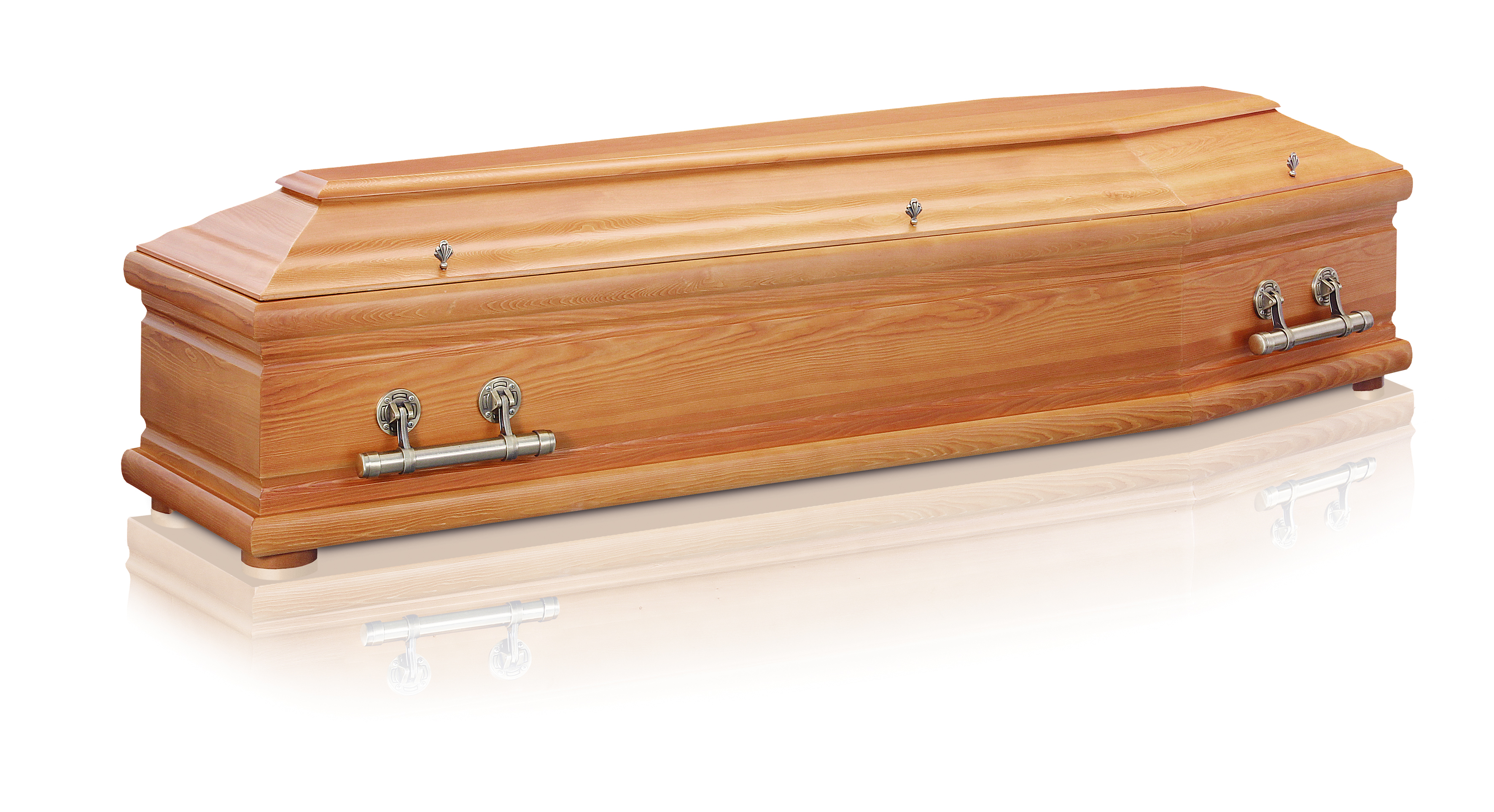 Exklusiv-Sarg aus Massivholz Birke furniert, Eichen-Hohlkehlen Farbe natur, lackiert Eckfüsse Metallgriffe Nr. 19...