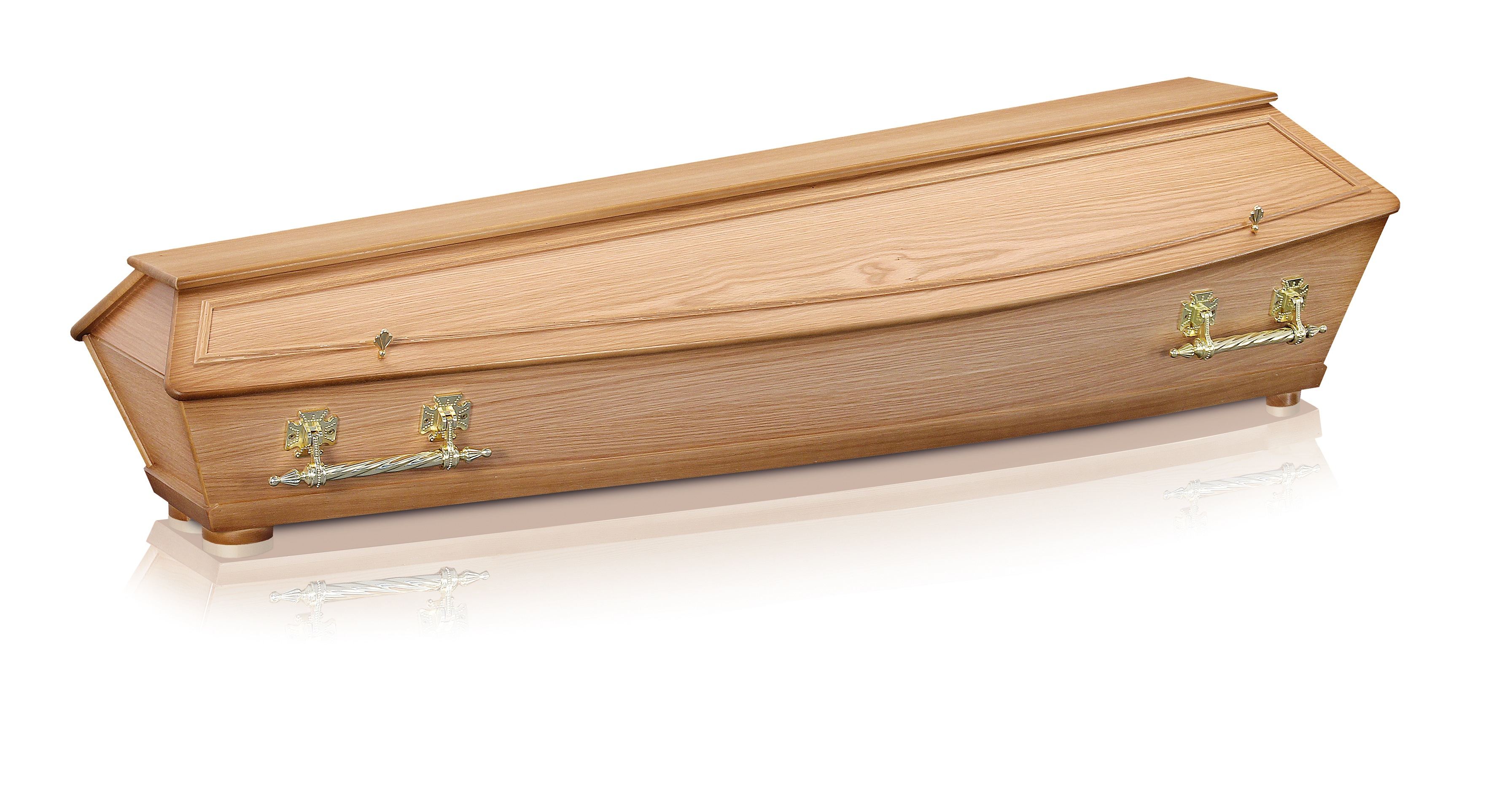 Exklusiv-Sarg aus Massivholz Birke furniert, Eichen-Hohlkehlen Farbe natur, lackiert Eckfüsse Metallgriffe Nr. 19...