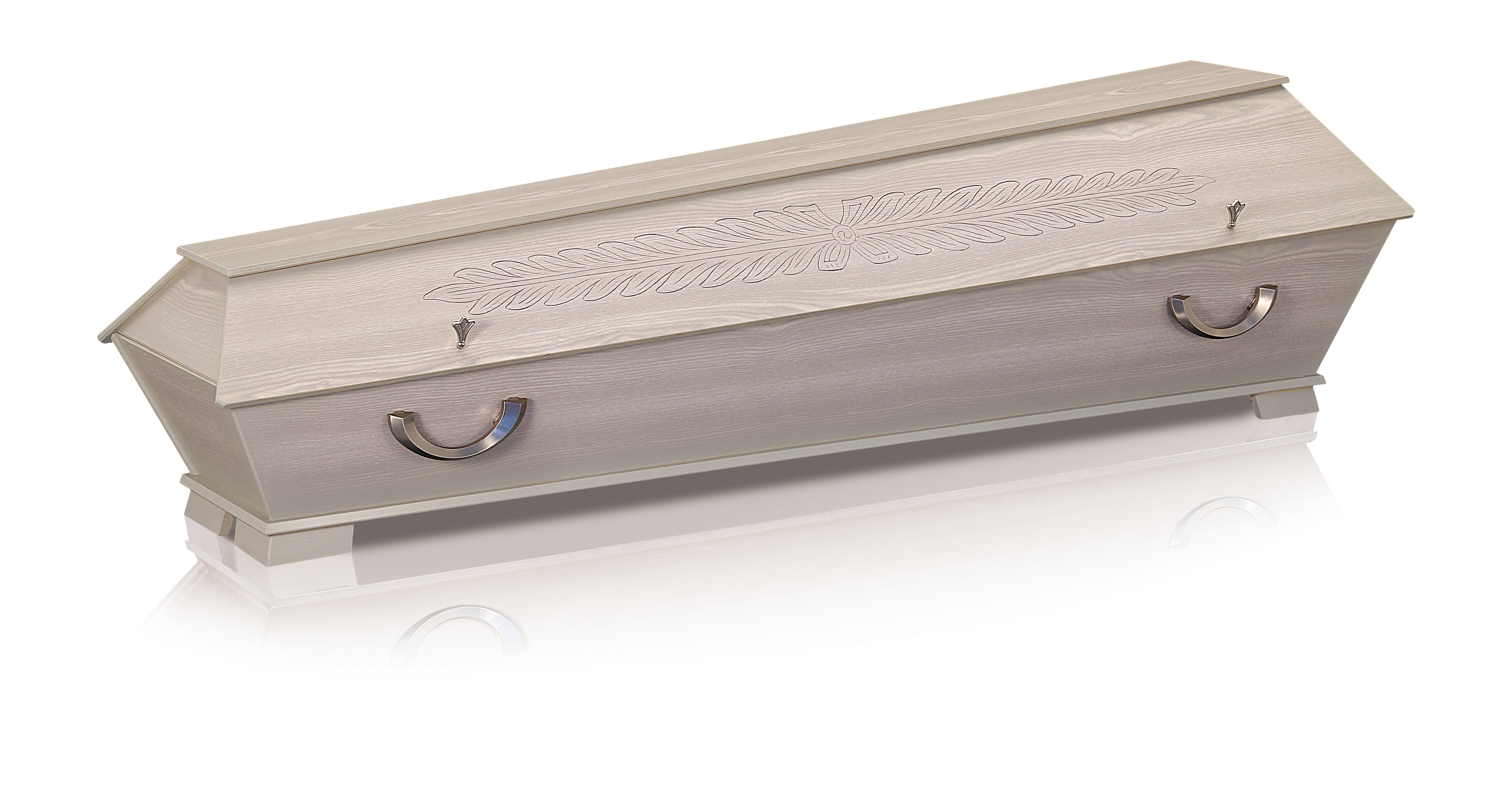 Exklusiv-Sarg aus Massivholz Birke furniert, Eichen-Hohlkehlen Farbe natur, lackiert Eckfüsse Metallgriffe Nr. 19...