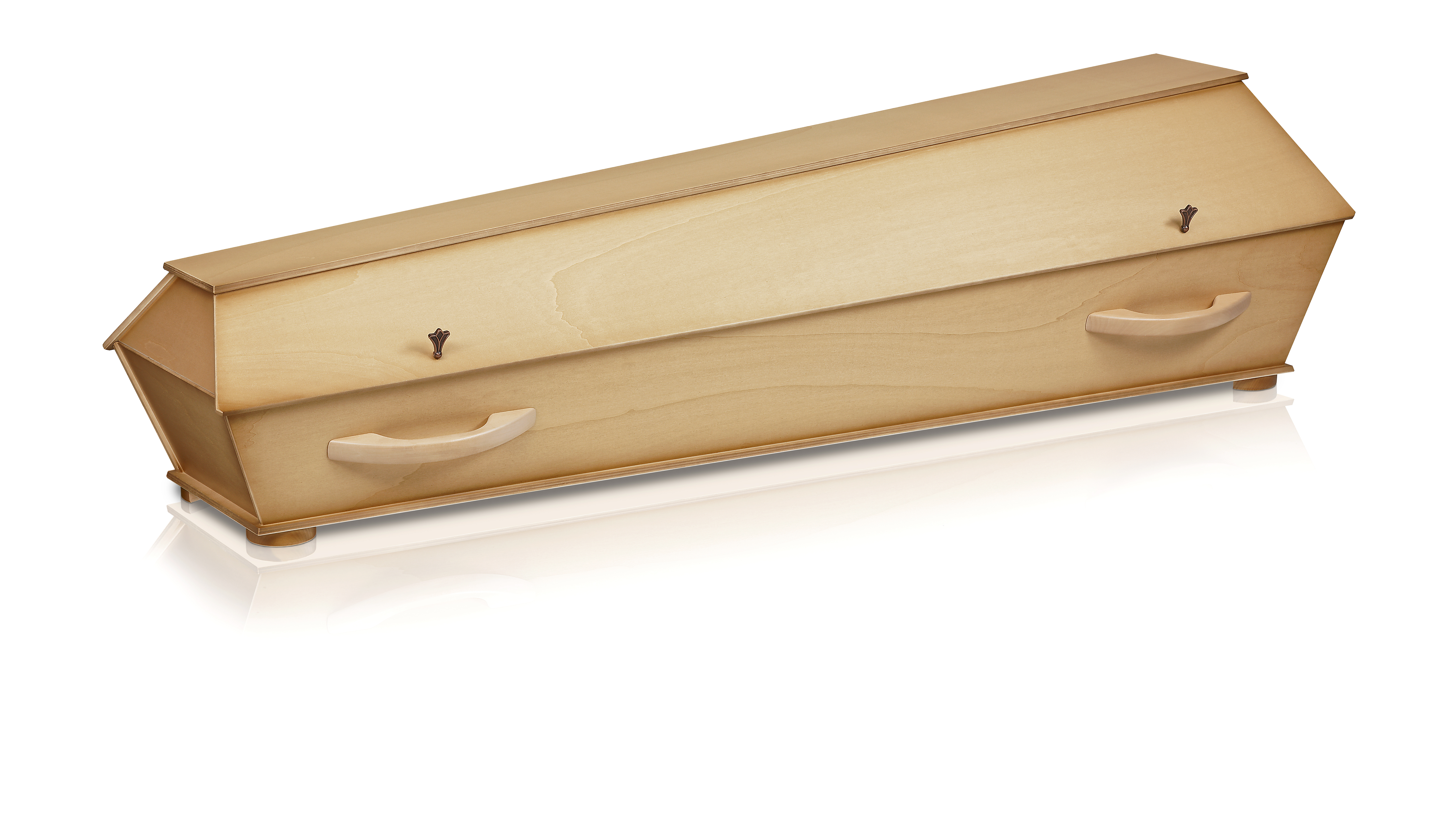 Exklusiv-Sarg aus Massivholz Birke furniert, Eichen-Hohlkehlen Farbe natur, lackiert Eckfüsse Metallgriffe Nr. 19...
