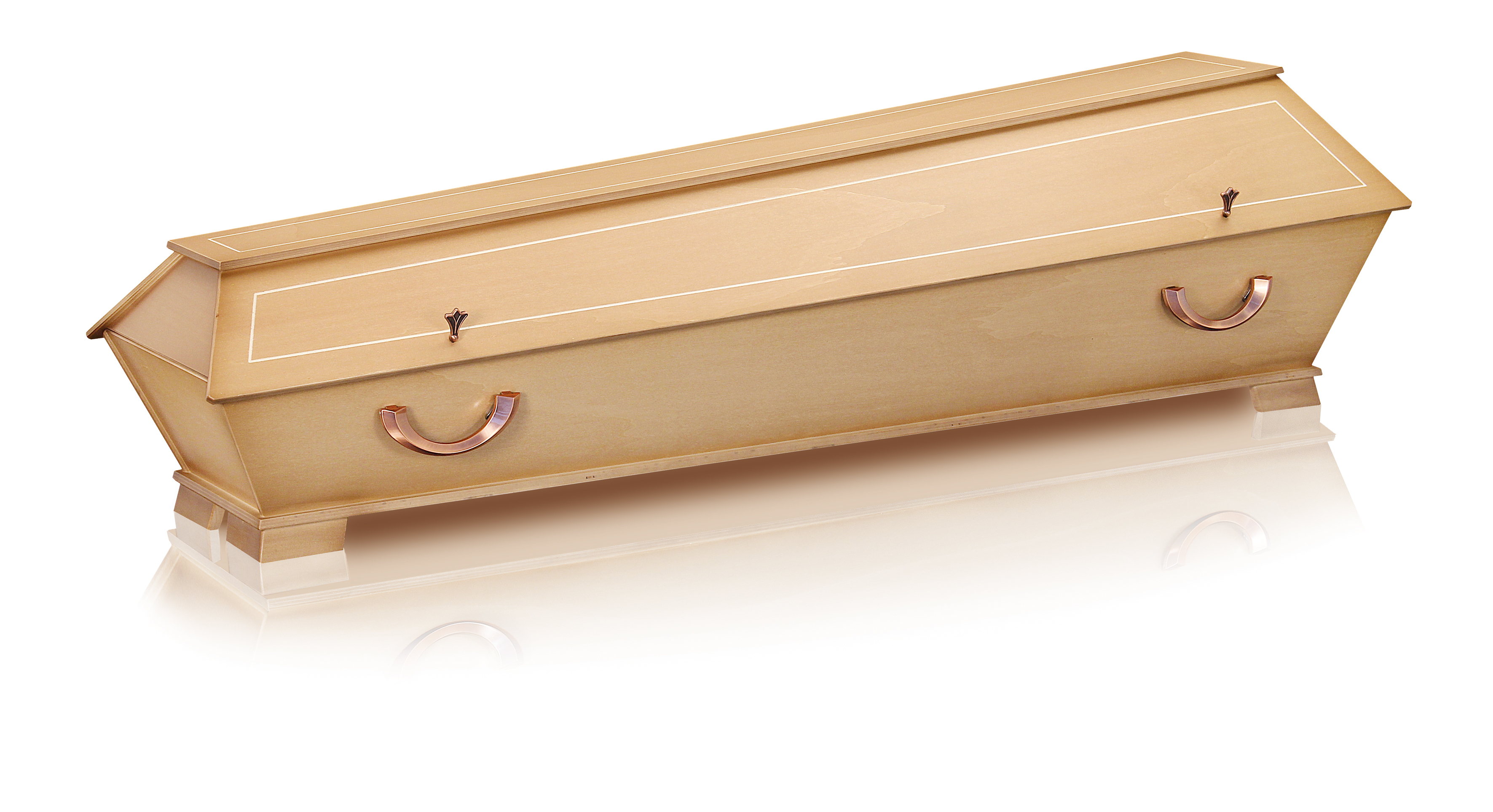 Exklusiv-Sarg aus Massivholz Birke furniert, Eichen-Hohlkehlen Farbe natur, lackiert Eckfüsse Metallgriffe Nr. 19...