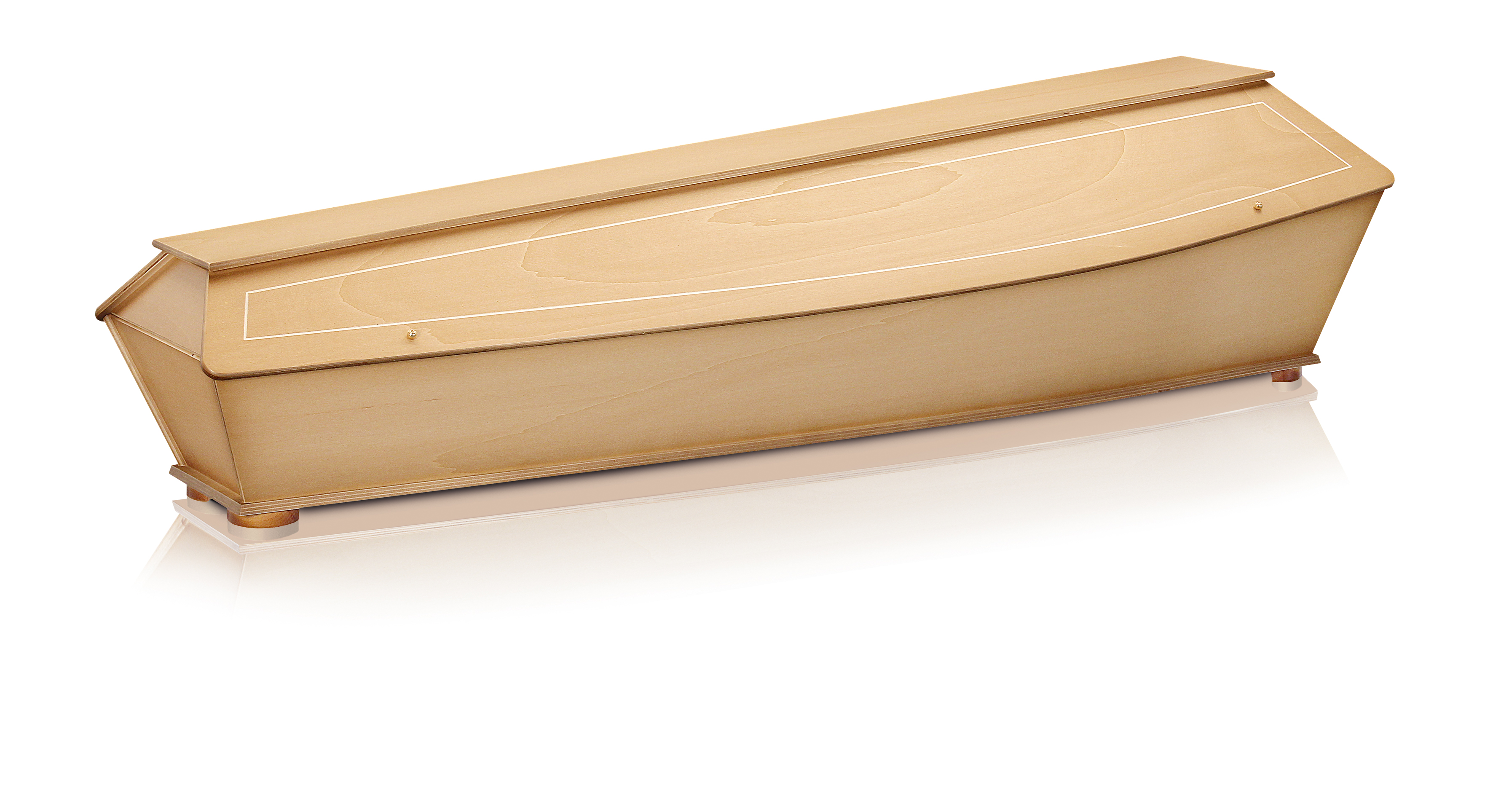 Exklusiv-Sarg aus Massivholz Birke furniert, Eichen-Hohlkehlen Farbe natur, lackiert Eckfüsse Metallgriffe Nr. 19...