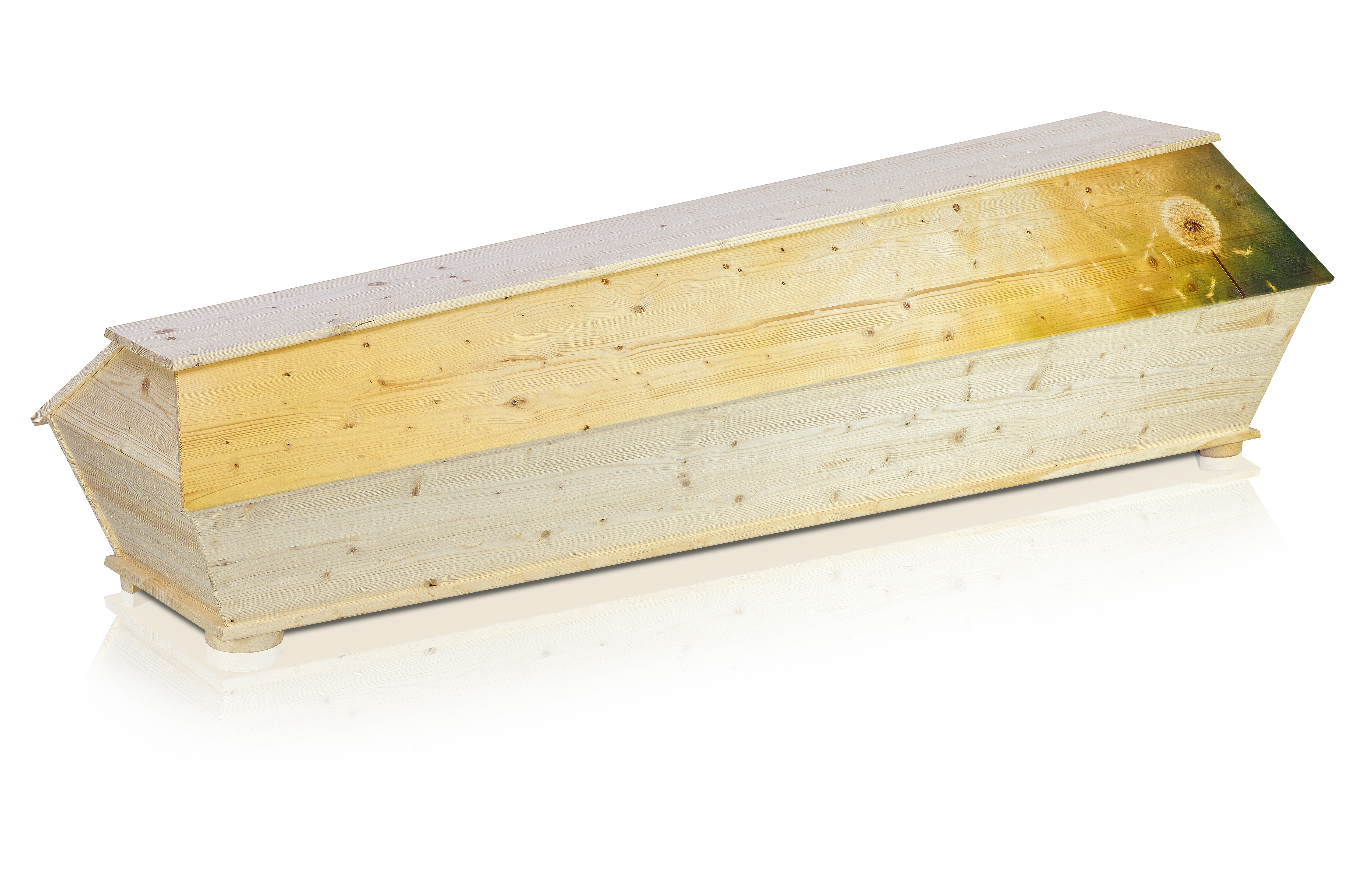 Sarg aus Massivholz Tanne roh, Alpenwiesen-Band Rondellenfüsse Kugelschrauben SI (Band aus echtem Heu, Blüten sind z...
