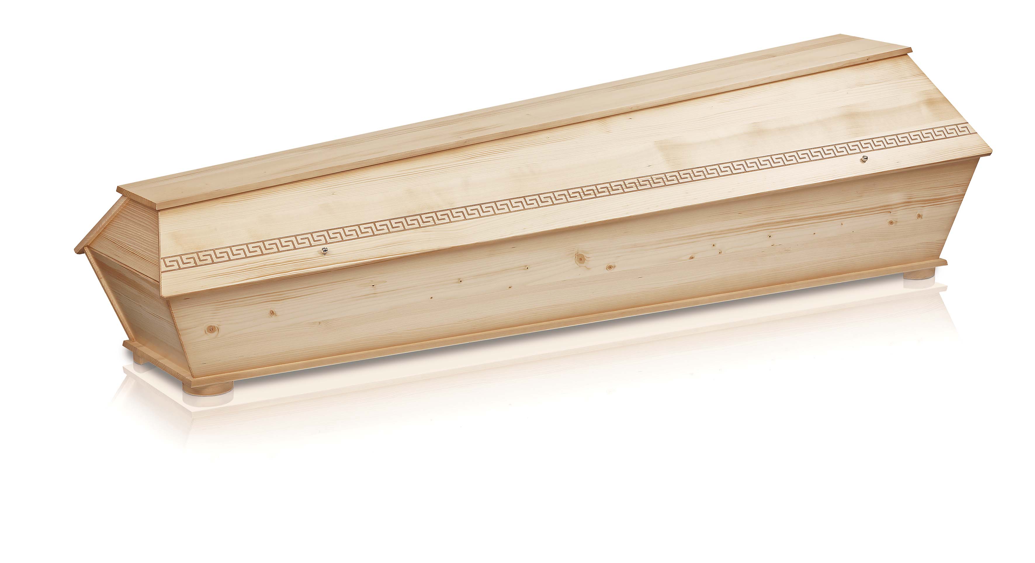 Exklusiv-Sarg aus Massivholz Birke furniert, Eichen-Hohlkehlen Farbe natur, lackiert Eckfüsse Metallgriffe Nr. 19...