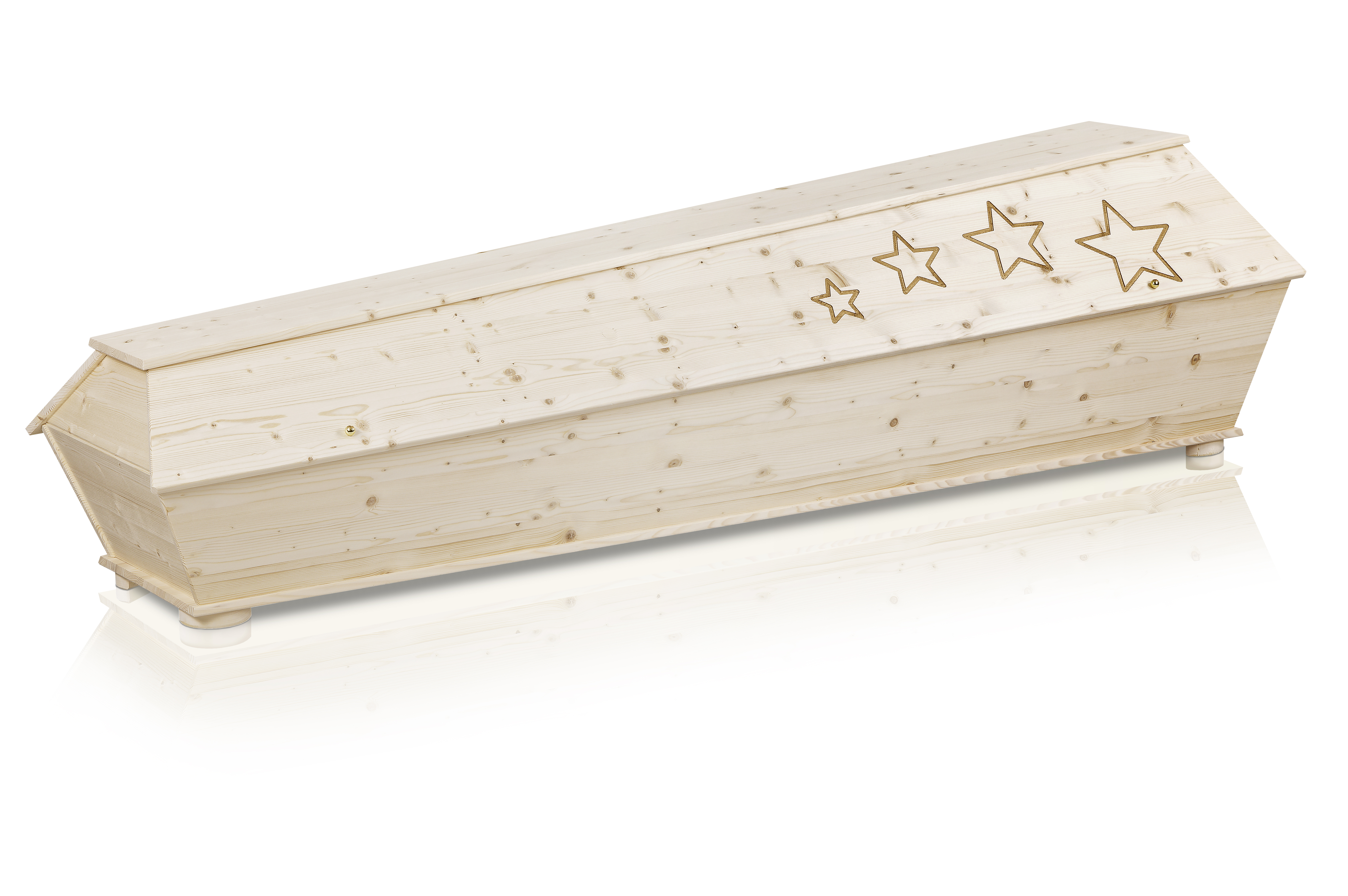 Sarg aus Multiplex Pappel Imitation Buche Farbe natur, patiniert hell, lackiert Kastenfüsse Ziernuten Metallgriffe Nr. 12 GOLD Kugelschrauben GOLD Verfügbare...