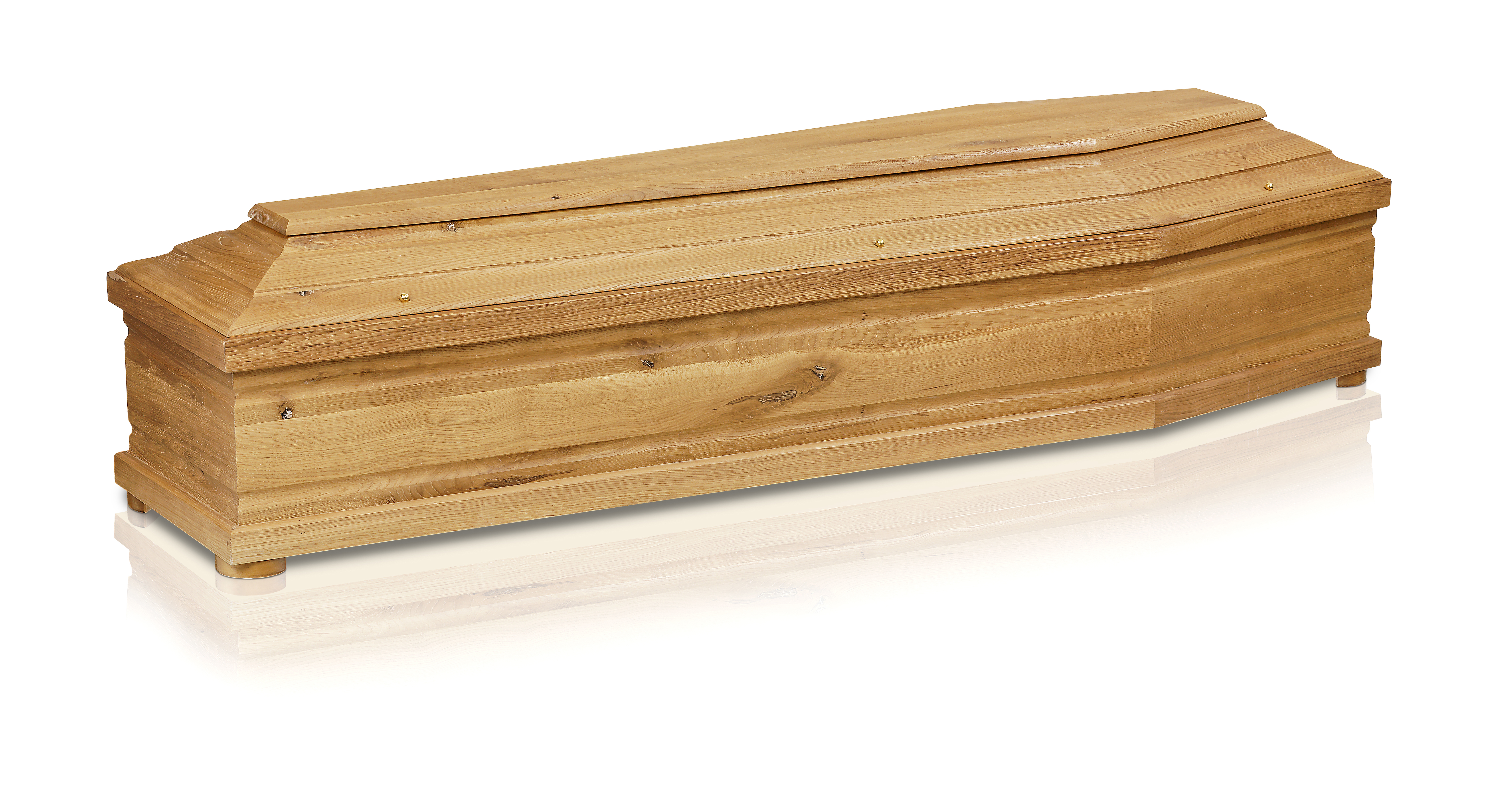 Exklusiv-Sarg aus Massivholz Birke furniert, Eichen-Hohlkehlen Farbe natur, lackiert Eckfüsse Metallgriffe Nr. 19...