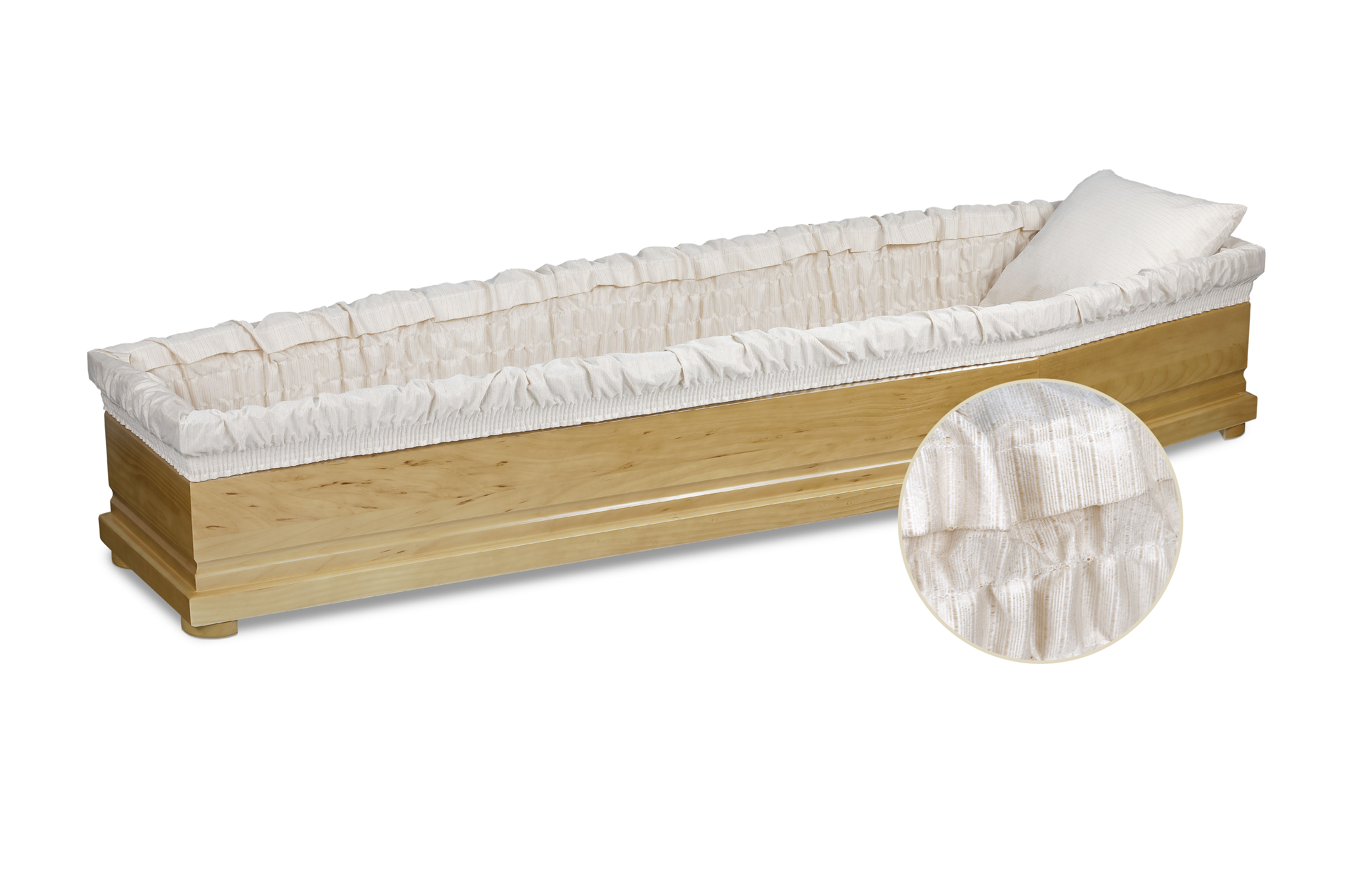 Auspolsterung mit Volant und Kissen aus Kunstseide, weiss