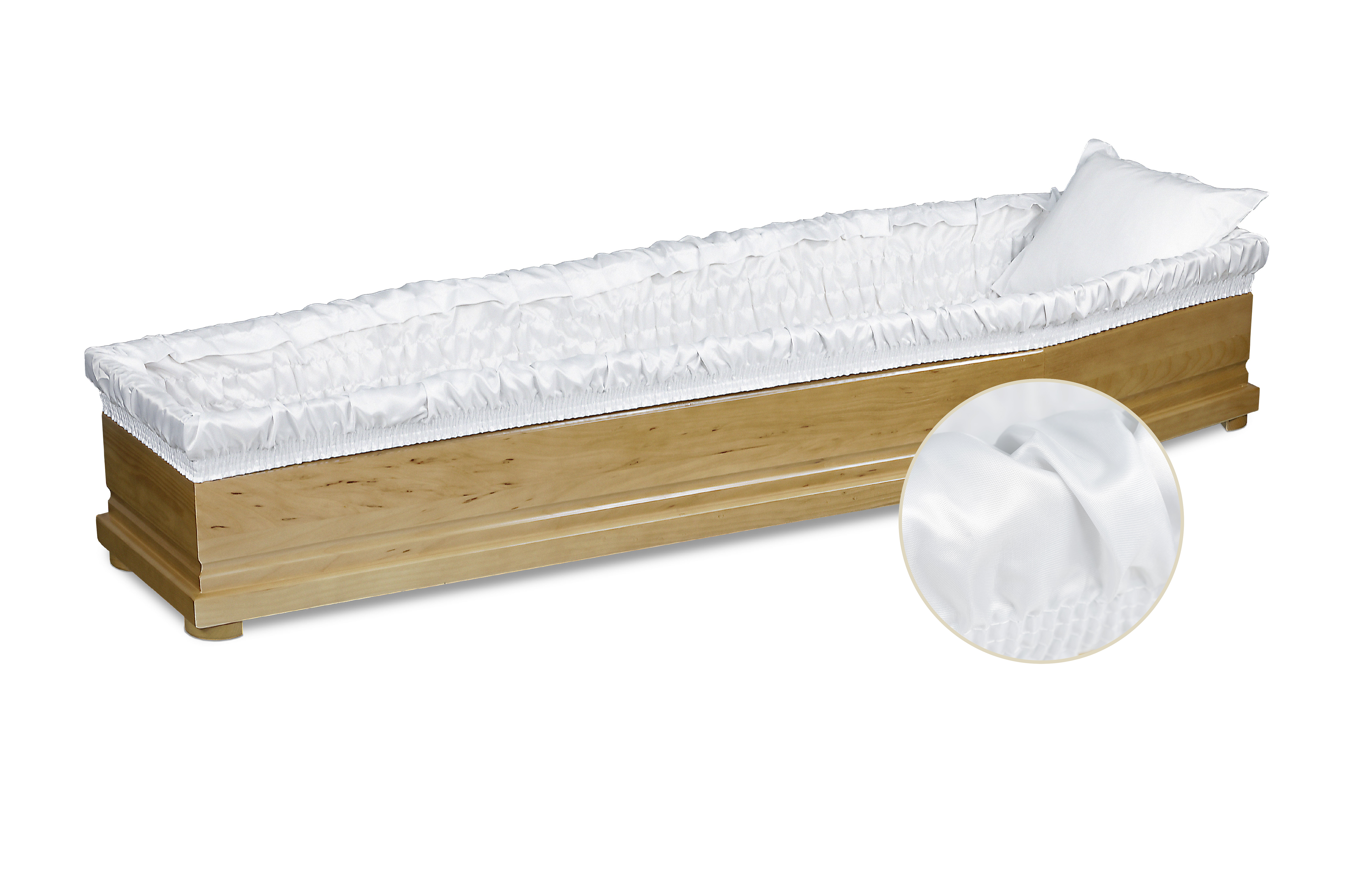 Auspolsterung mit Volant und Kissen aus Kunstseide, weiss