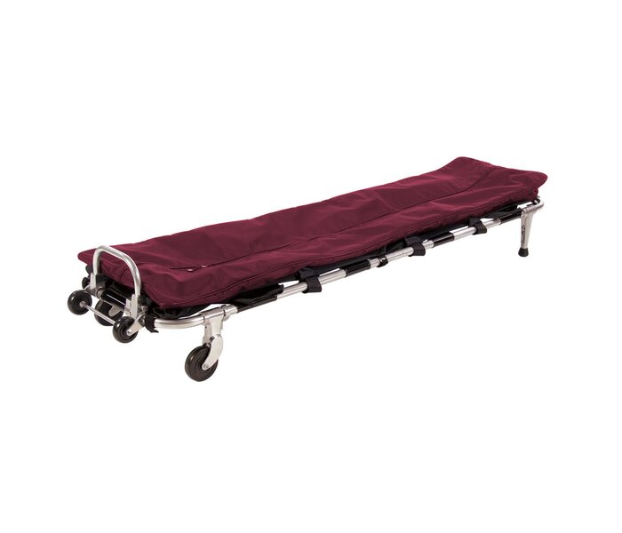 Die Überführungstragen sind in der Mitte klappbar und können somit platzsparend untergebracht werden. Die Grundbespannung ist abwaschbar und desinfektionsmittelfest.