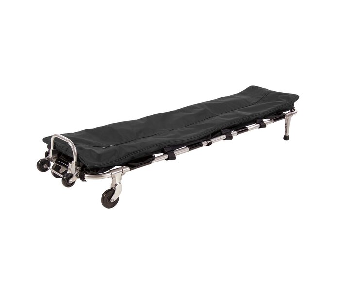 Die Überführungstragen sind in der Mitte klappbar und können somit platzsparend untergebracht werden. Die Grundbespannung ist abwaschbar und desinfektionsmittelfest.