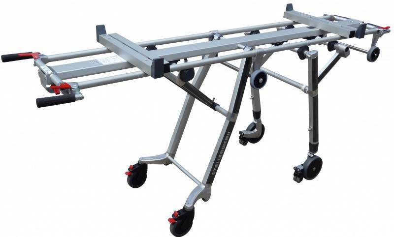 Scherenwagen aus Aluminium. Seitlich drehbare Griffe. geöffent: H 62 cm, L 118 cm, 19 kg