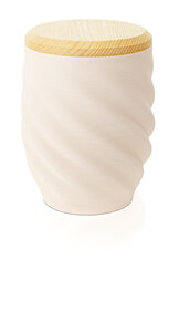 Die Herstellung dieser Keramikurne erfolgt mittels 3D-Druck. Aufgrund der leichten Brandstufe ist diese vergänglich.