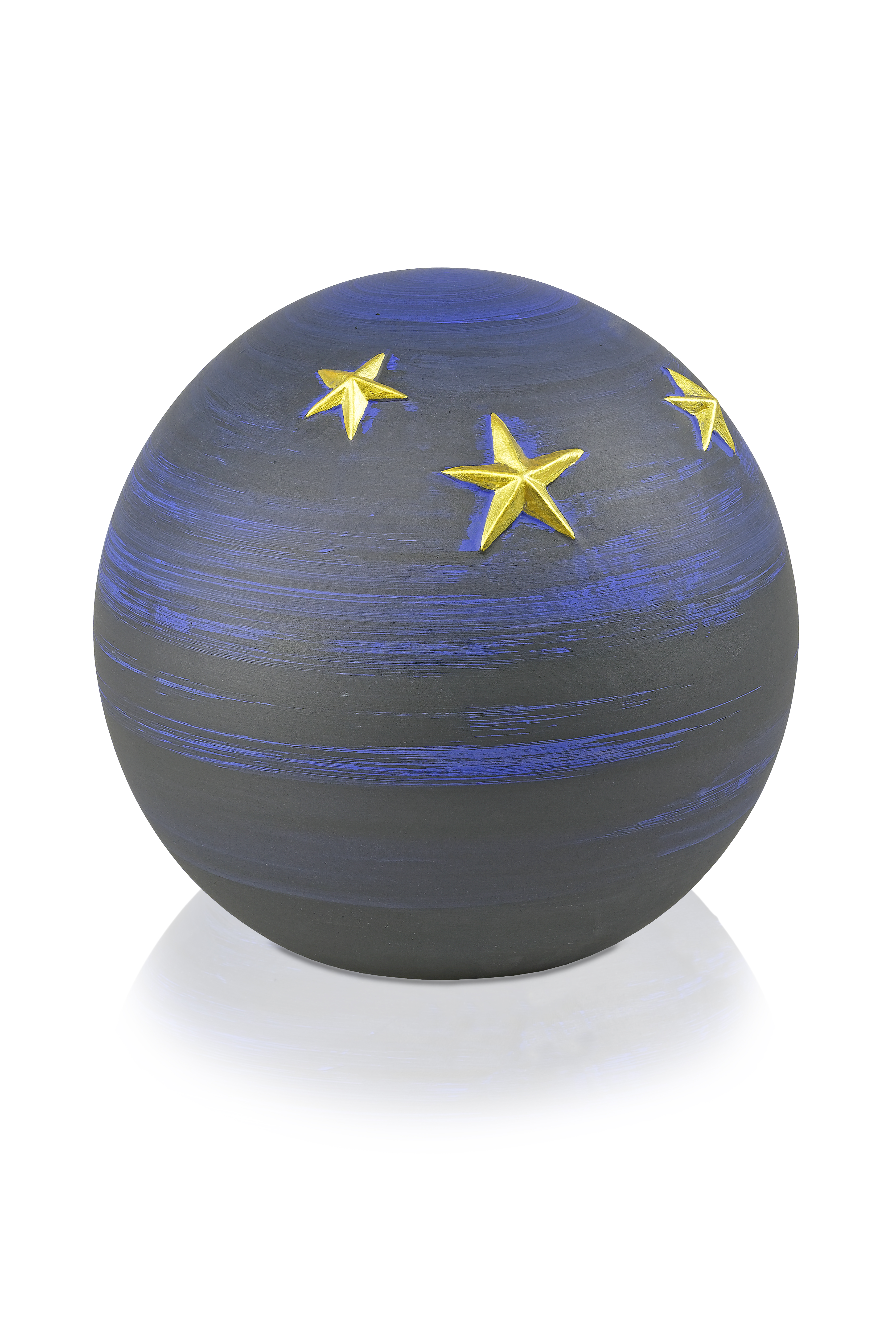 Keramikurne Kugel, blau/schwarz, Gold-Sternen