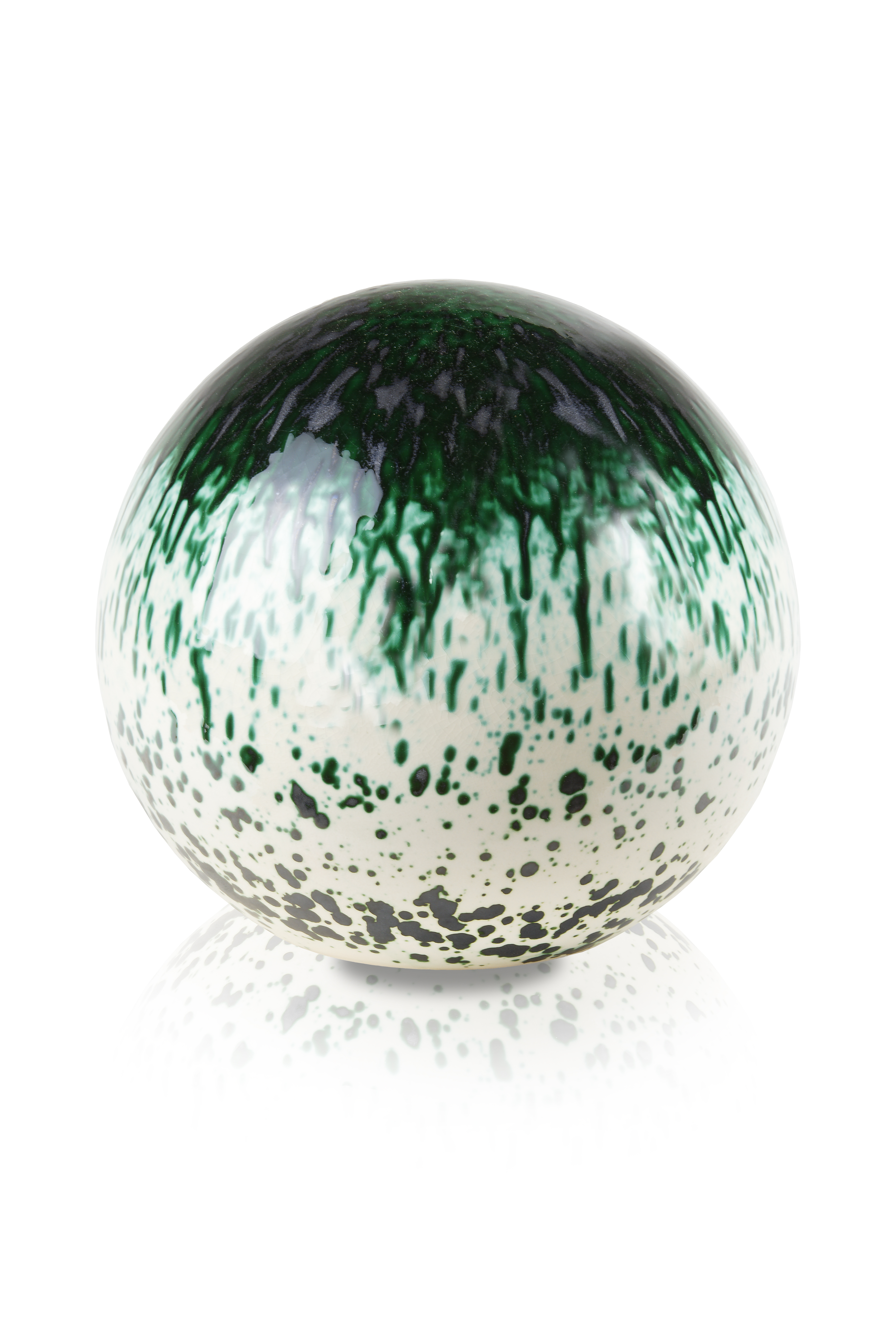 Keramikurne Kugel, weiss mit Kupferregen grün