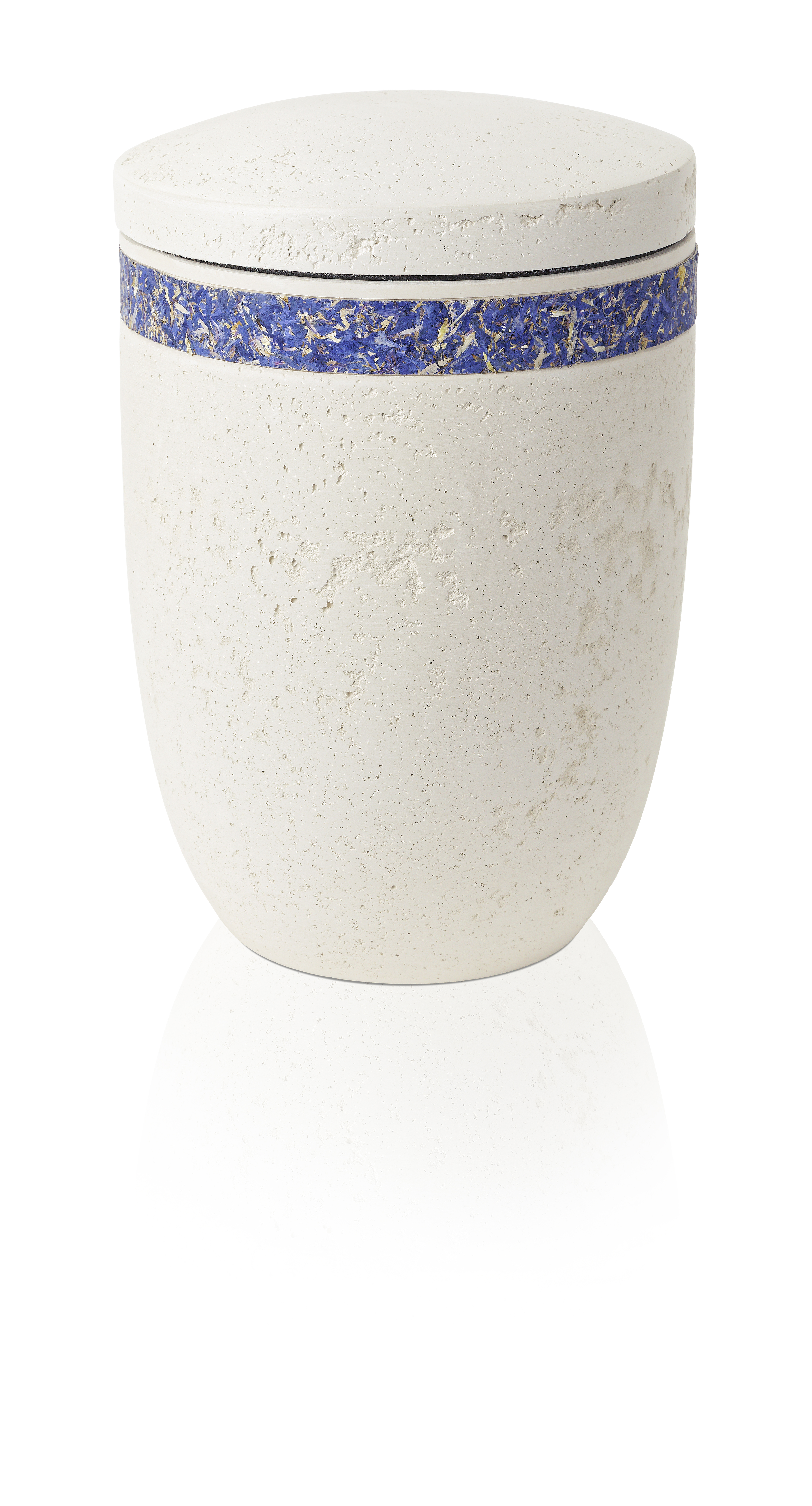 Ökourne, Steinoptik, beige mit Kornblumenband