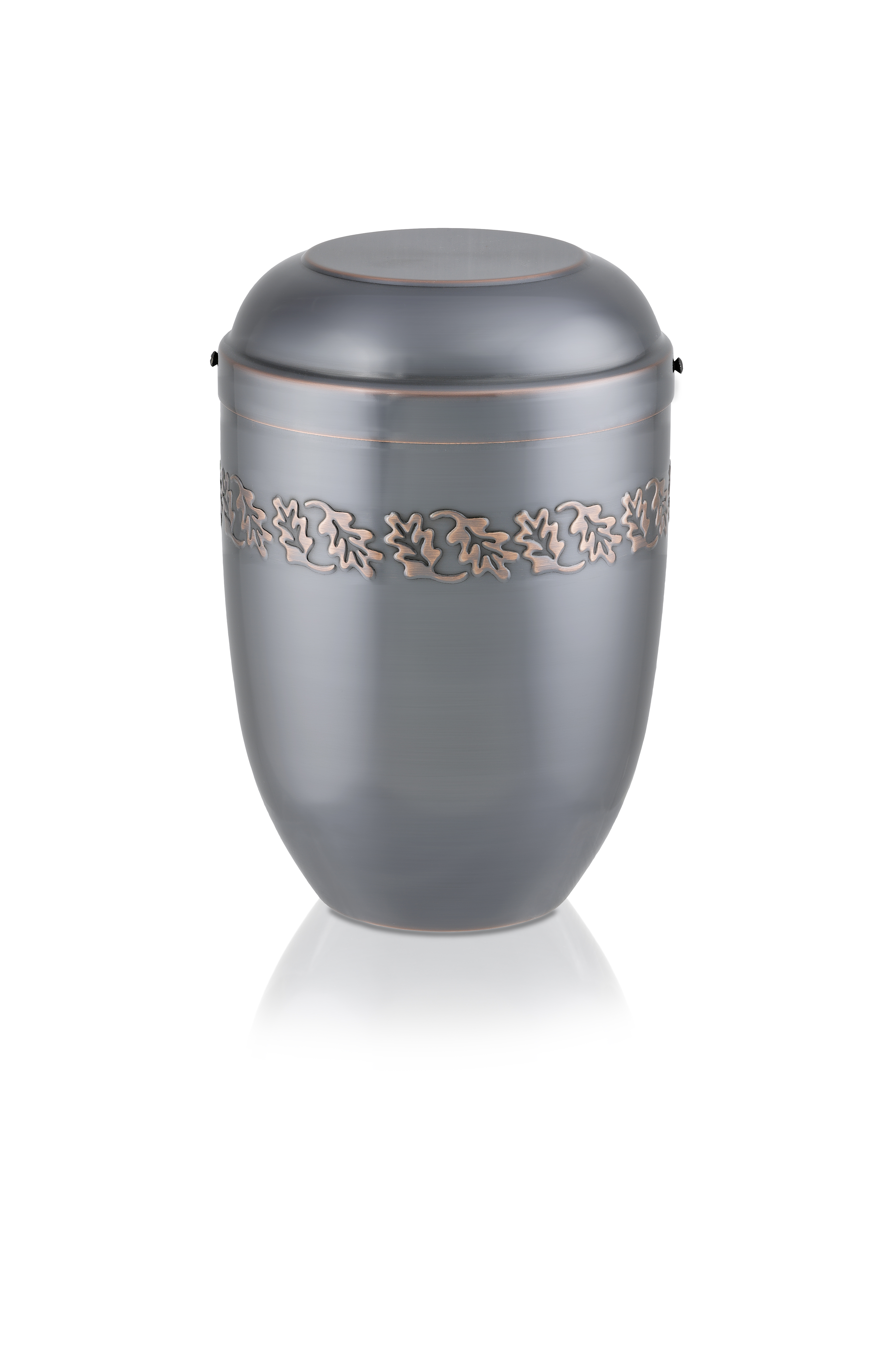 Stahlurne, dunkel, Eichenlaub-Dekor geprägt