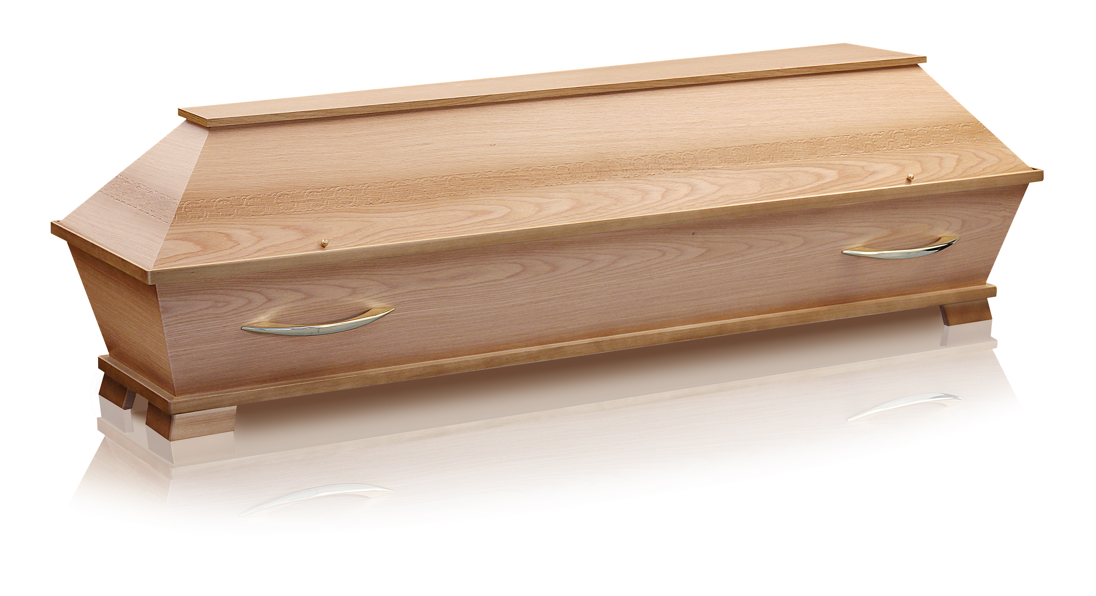 Cercueil exclusif en bois massif bouleau plaqué, gorge en chêne couleur naturel, verni pieds d’encadrement poignées no 19 OR ...