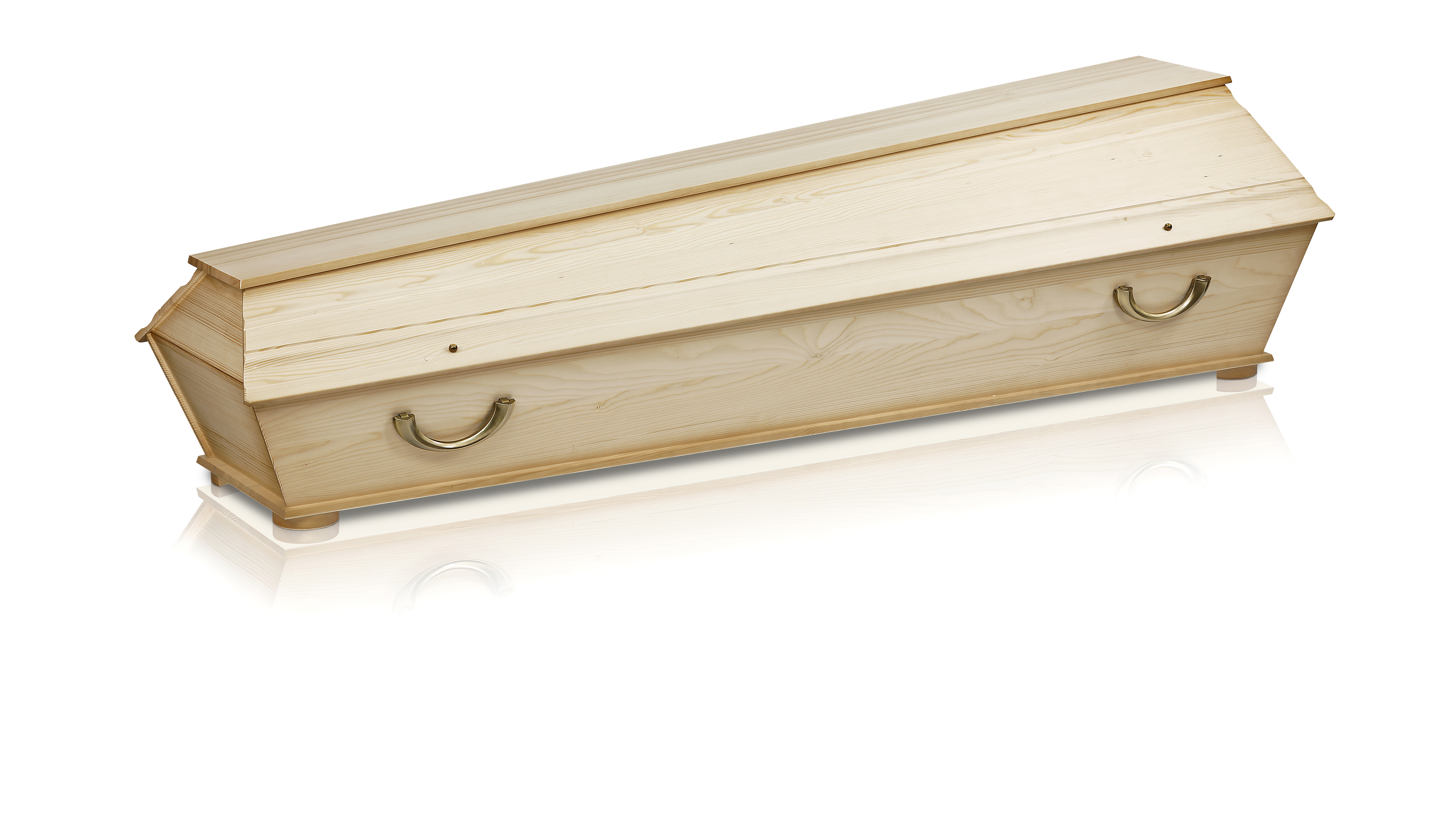 Cercueil en sapin massif couleur clair, verni demi-transparent pieds d'encadrement 3 encradrements fraisés vis décorativ...