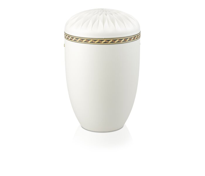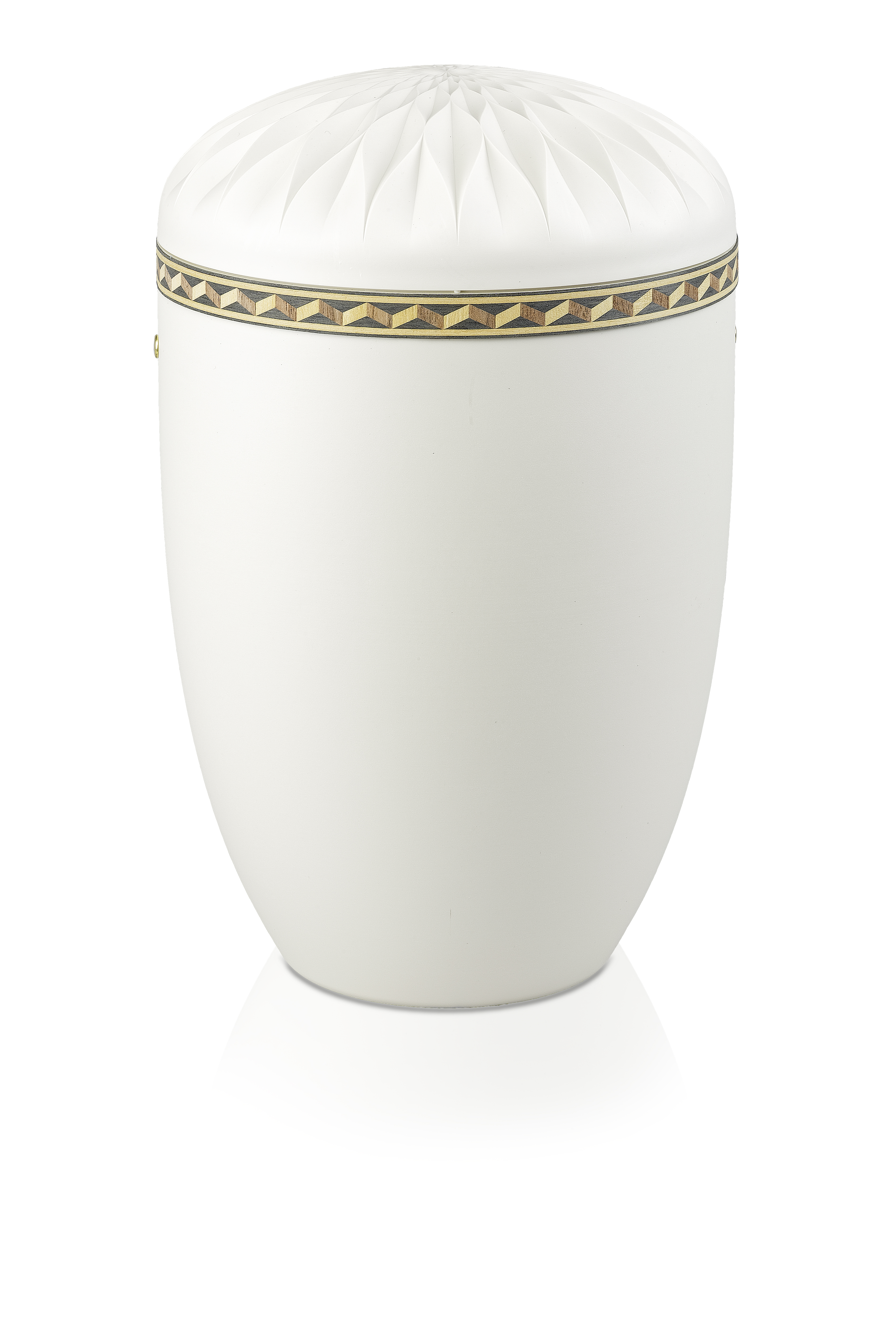 Urne écolgique, blanche, bande de marqueterie, couvercle relief